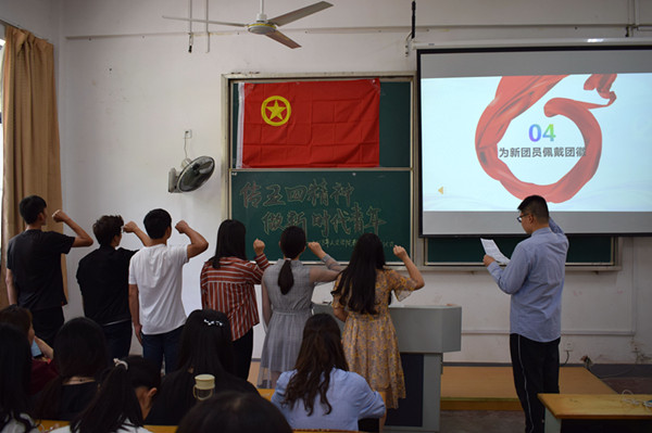 5月4日既是青年节,也是中国共青团成立96周年的纪念日,在这个特殊的日子里,为激励广大青年,传递五四精神,英国上市公司365于12:20分在教学楼第二阶梯教室,举行了新团员入团仪式。我院团总支书记童明明老师,全院各班级团干部和新团员参加了本次活动。