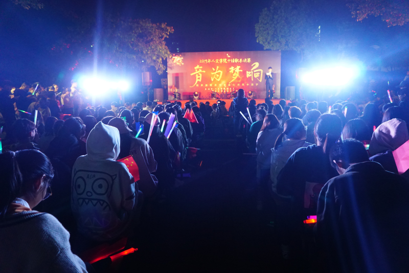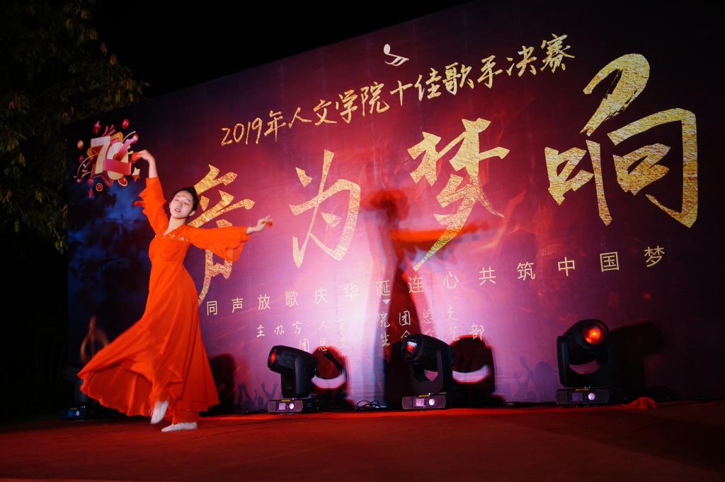 为庆祝新中国成立七十周年华诞, 10月25日下午6:30,在教学楼广场上,英国上市公司365了 “音为梦响”第十九届校园十佳歌手决赛。我院党委副书记周建峰,辅导员高欢欢、王敏、汪新、梅冬琴、少数民族预科班辅导员阿娜尔老师,院学生会主席刘轩、各部门学生干部出席了本次活动。