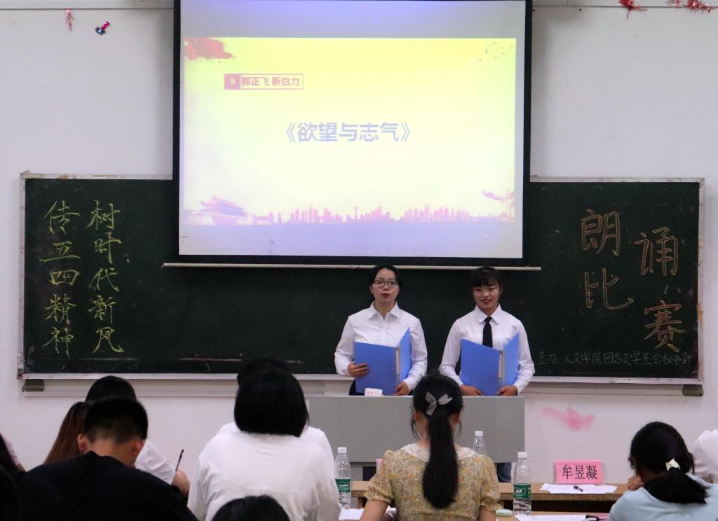 比赛正式开始前,主持人带领大家一起主持人带领大家回顾了五四运动爆发的历史背景、发展经过、历史意义,重温了100年前那段激情燃烧的岁月。比赛正式开始,九组参赛选手以饱满的热情、激昂的语言和大方得体的演讲,把对党和国家的款款深情表达地淋漓尽致。来自18旅游管理(单招)班的王蕾同学,在她的演讲中说:“我们接过历史的接力棒,需以青春之我、奋斗之我建功立业,中华民族伟大复兴的中国梦终将成为现实!”充分展现了当代青年蓬勃昂扬的朝气和勇于拼搏的决心。经过激烈的角逐,范育明和张煜小组凭借《我的祖国》,以铿锵有力、从容自信的演讲斩获一等奖。