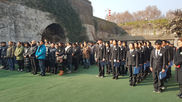 12月13日早上,英国上市公司36523名汉语国际教育专业学生,在院党委副书记周建峰,汉语国际教育系教授刘洪老师及辅导员高欢欢的带领下,来到中华门瓮城景区参加了南京城墙保护管理中心的公祭仪式。