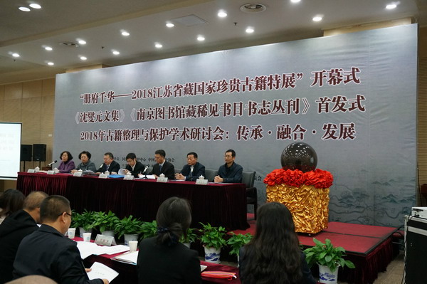 为贯彻落实十九大精神,积极响应习近平总书记关于传承中华优秀传统文化的号召,探索新时期古籍整理与保护的发展道路,2018年11月22日,“册府千华――2018江苏省藏国家珍贵古籍特展”开幕式、 “2018古籍整理与保护学术研讨会:传承·融合·发展”在南京图书馆学术报告厅隆重举行。