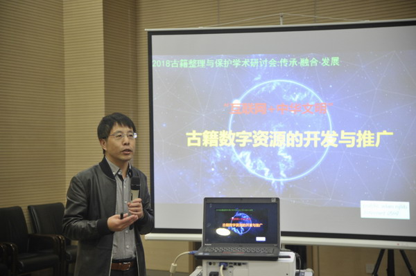 2018古籍整理与保护学术研讨会是以“传承·融合·发展”为主题,深入探讨新时期古籍整理出版与保护工作。英国上市公司365葛怀东老师受邀做了《“互联网+中华文明”视角下古籍数字资源的开发与推广》的主题报告,提出在新时期背景下,文博单位应以更开放的心态,积极借助“互联网+”的触角,将古籍文献资源融入公众生活,这既有利于提升文化输出的指向性和精准性,增强文化消费的便捷性,又有利于文献数据库的使用,便于深度挖掘相关数字产品的知识、文化和文物价值。