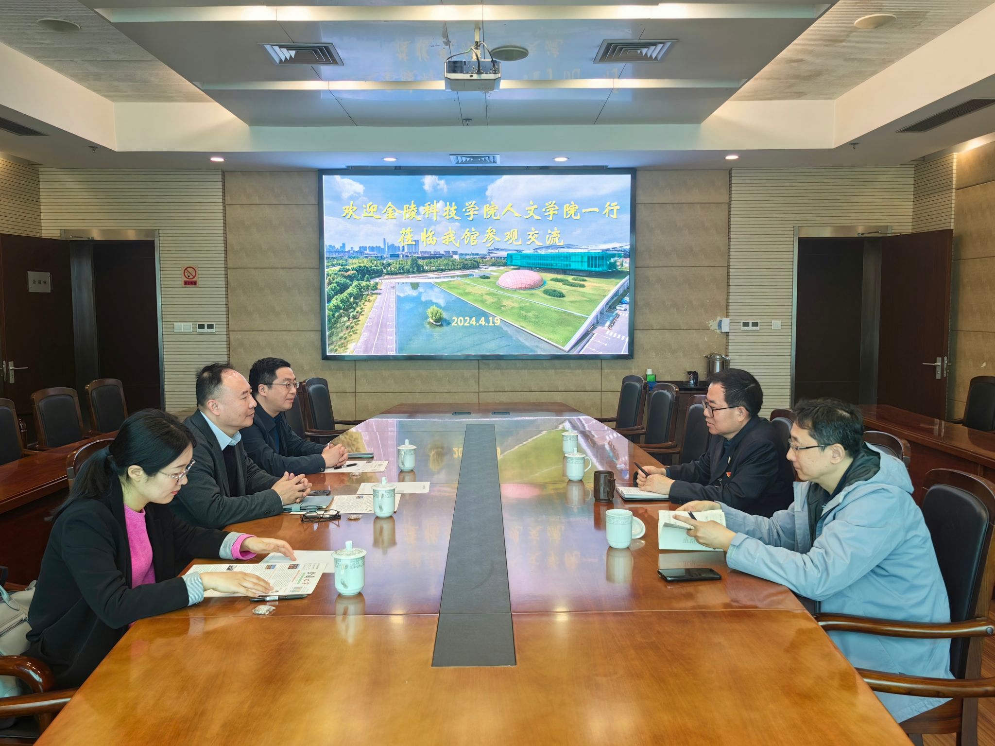为落实学校2024年工作布置会精神,深化校地融合发展,推进金陵图书馆和英国上市公司365在人才培养、科学研究和社会服务等方面的合作,4月19日,英国上市公司365院长张维亚带队到金陵图书馆进行调研座谈。金陵图书馆馆长焦翔、副馆长方炜等接待了张维亚一行。