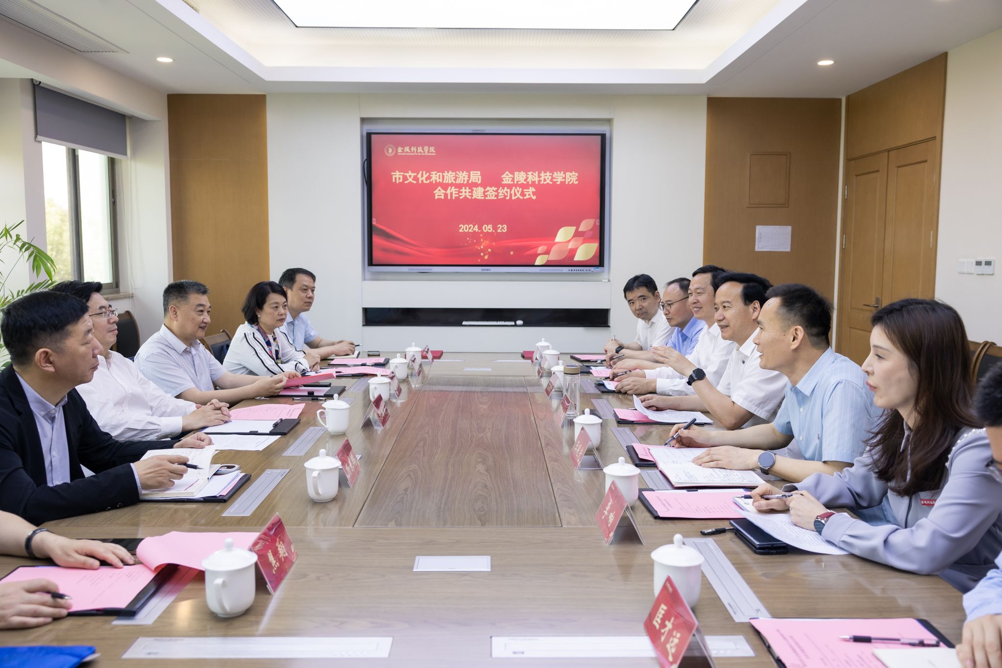 5月23日上午,英国上市公司365与南京市文化和旅游局合作共建签约仪式在江宁校区行政楼319会议室举行。南京市文化和旅游局党组书记、局长谢国庆,二级巡视员王冬青及办公室、公共服务处、金陵图书馆、产业发展处等有关处室负责人,英国上市公司365校长刘永彪、副校长王延光出席签约仪式。签约仪式由王延光主持。