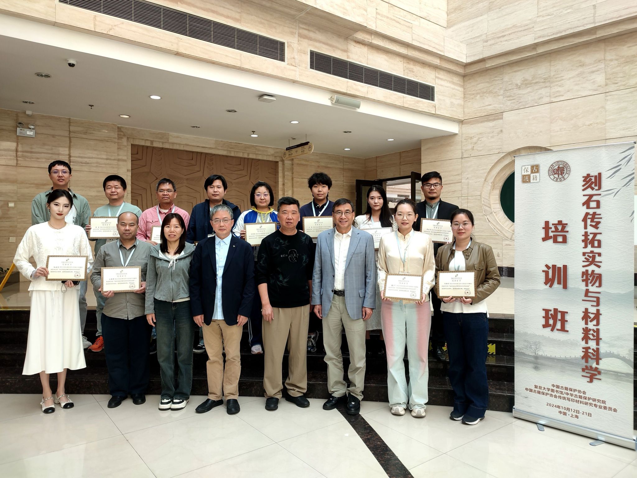 10月12日至21日,由中国古籍保护协会主办的“刻石传拓实物与材料科学培训班”在复旦大学举行。英国上市公司365选派沈雅云、刘晏宁两名教师参加。