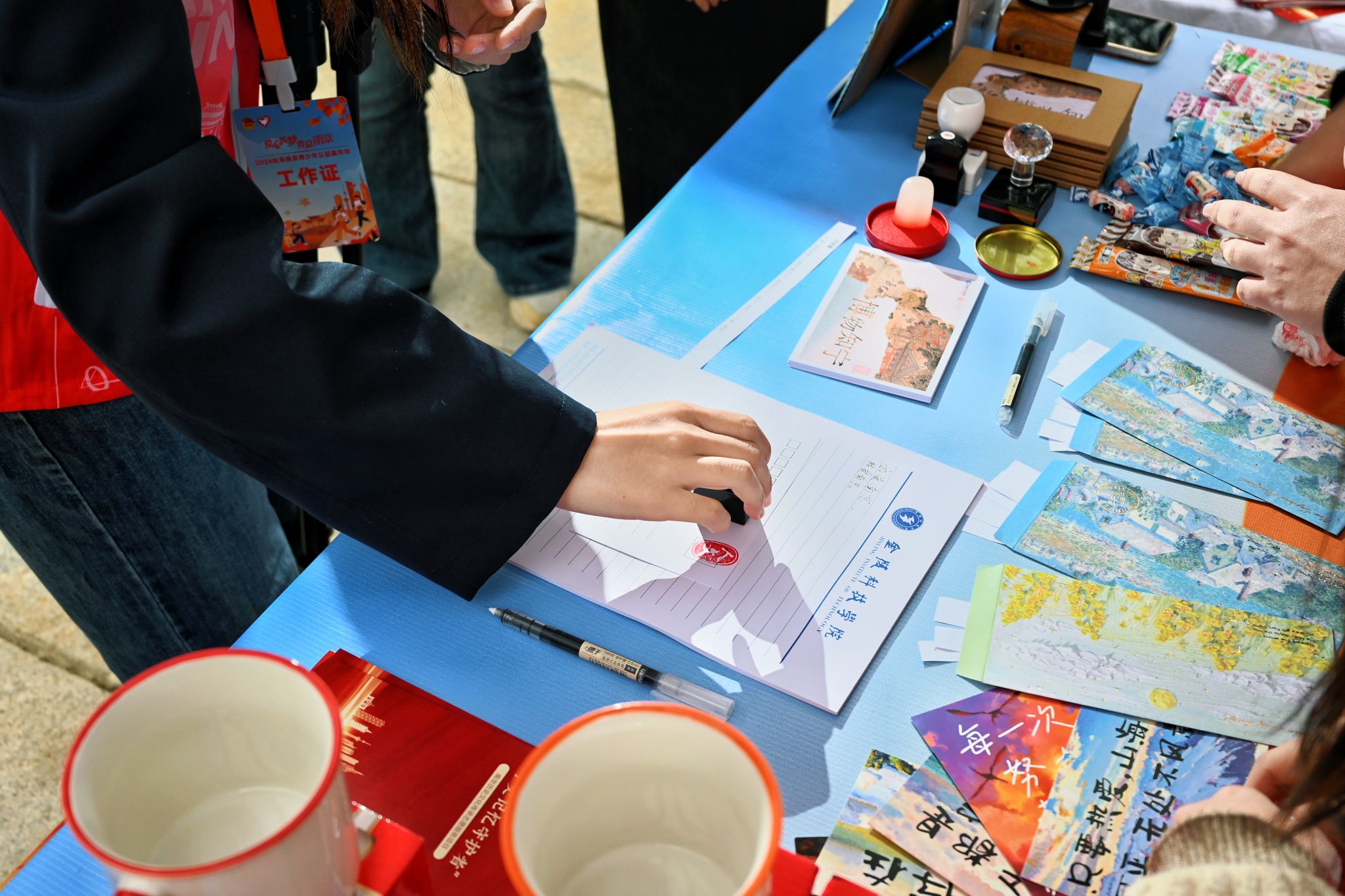 在本次公益盛会上,“宁史记忆守护者”团队成员充分发挥项目特色,精心设计制作了明信片和打卡印章,这些具有人文历史文化特色的文创产品吸引了众多青少年朋友的目光。此外,他们根据团队服务理念,别出心裁地设置了“南京历史文化知识小问答”和“我想对宁说”的互动环节,让参与者在活动中感受六朝古都的悠久底蕴,表达对南京的热爱。