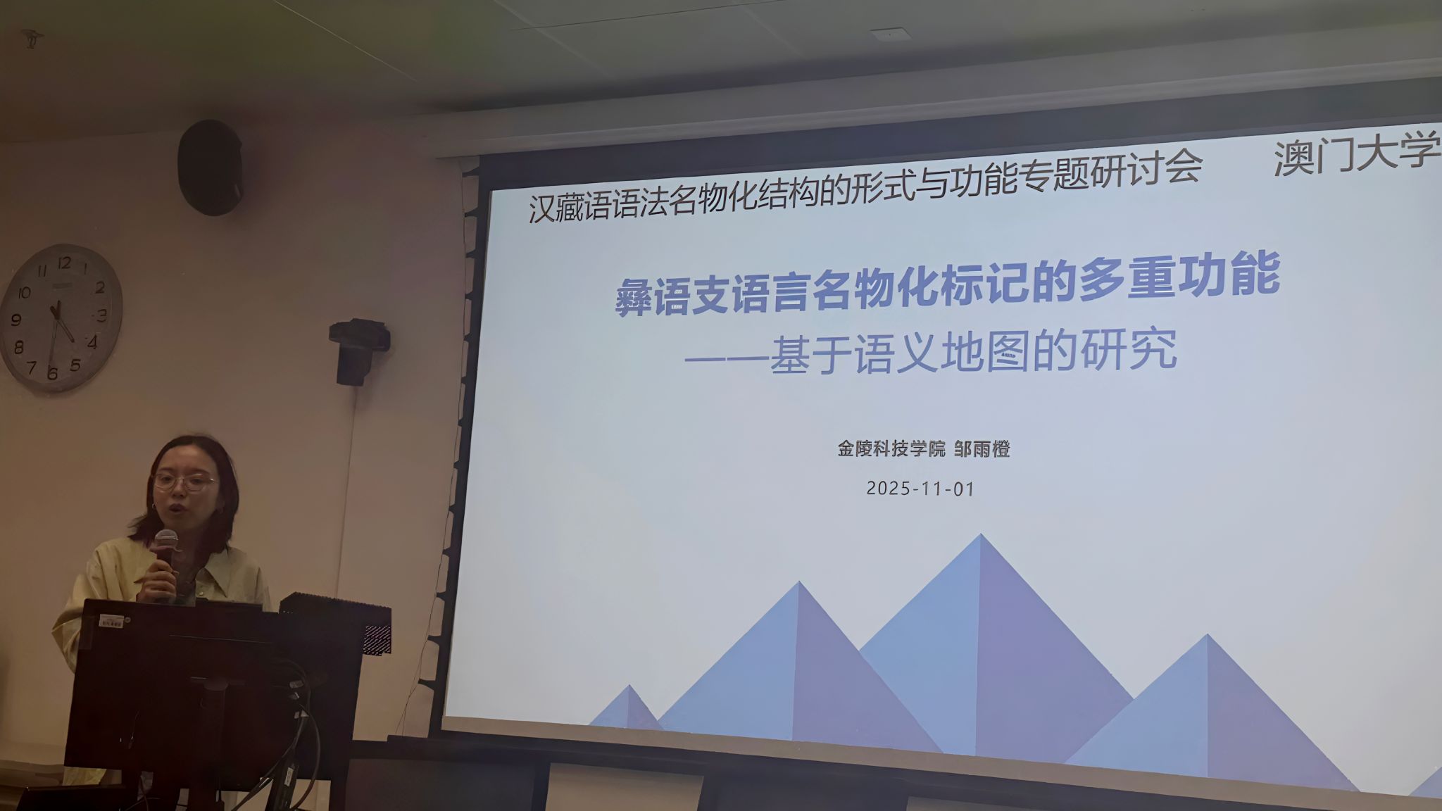 11月1日至2日,由澳门大学英国上市公司365中国语言文学系主办的“汉藏语语法名物化结构的形式与功能专题研讨会”在澳门大学顺利召开。我院青年教师邹雨橙博士受邀参会,以“彝语支语言名物化标记多重功能及语法化路径”为题作特邀学术报告,充分展现了我院青年教师的学术风采。